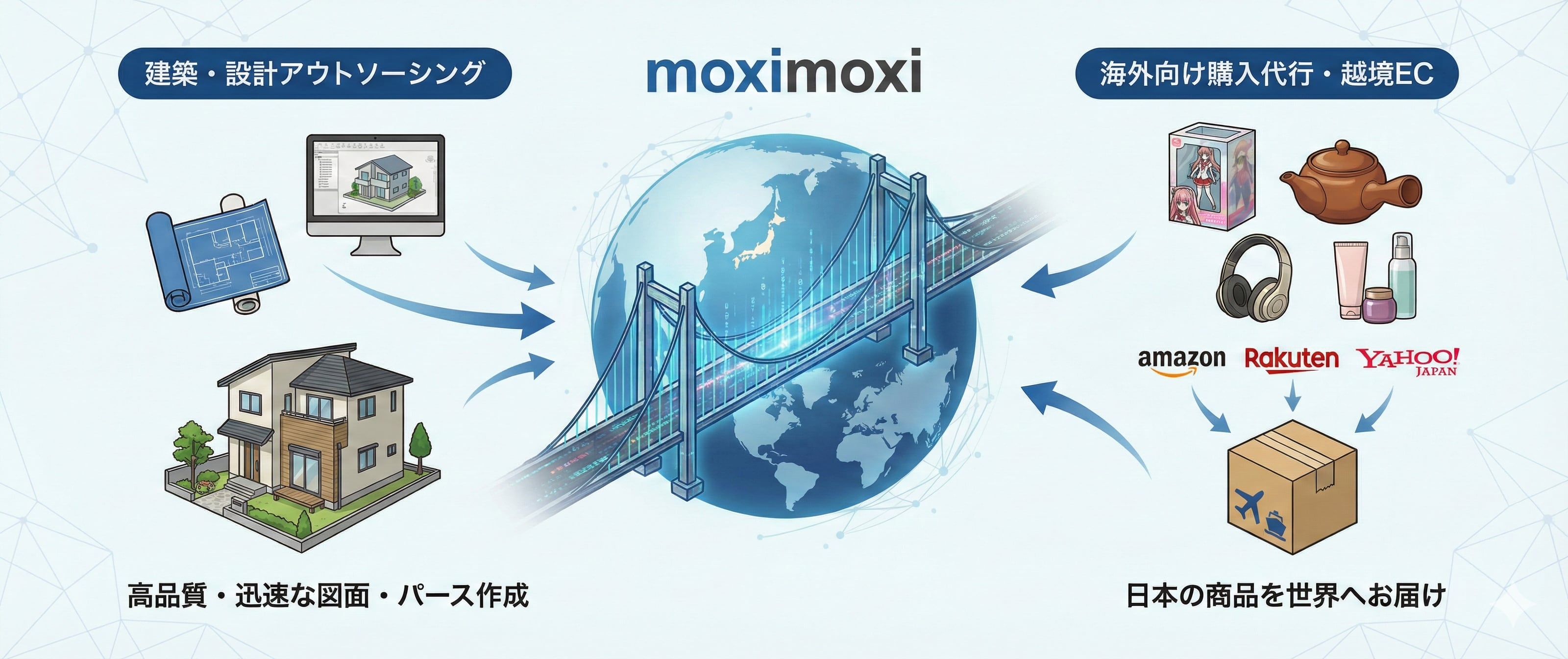 20年以上にわたり日本と世界をつなぐ中で、私たちは日本の「繊細な建築技術」と「魅力的な商品力」の両方に無限の可能性を感じてきました。 ネットで世界は繋がりましたが、本当に良いものを届けるためには、依然として立ちはだかる国境や文化の壁をクリアしなければなりません。 私たちは、建築設計の緻密さと国際物流のダイナミズム、この2つの専門性を武器に、あらゆる壁を突破します。 日本の素晴らしい価値を、世界中の必要とする場所へ。moximoxiは、その流通における新しいスタンダードを創造します。